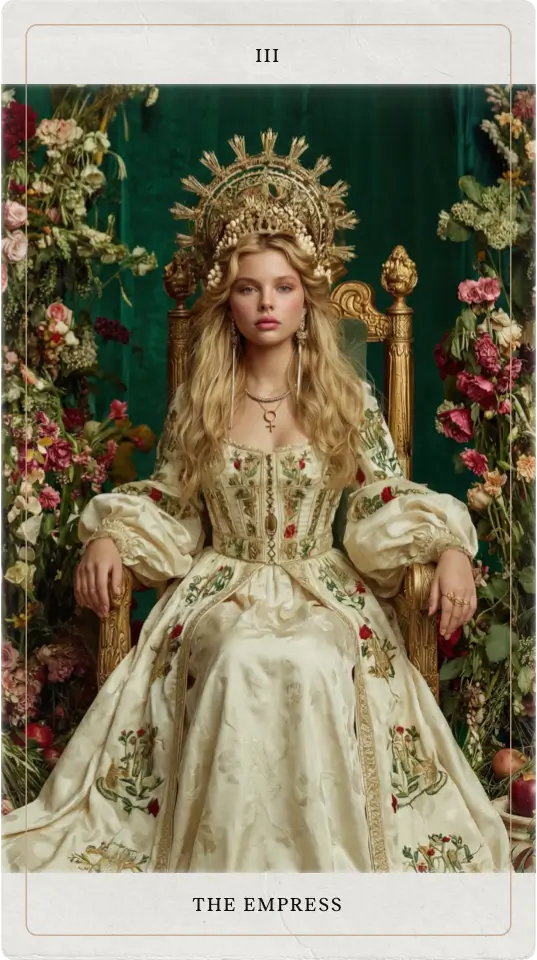 Rano wyciągasz jedną kartę. Czytasz Jasność — to, co w tej karcie jest widoczne w Twoim dniu. Gdy jesteś gotowa, otwierasz Cień — to, co ta sama karta pokazuje w tym, co w sobie tłumisz. Złoty Cień otwiera się następnego dnia.